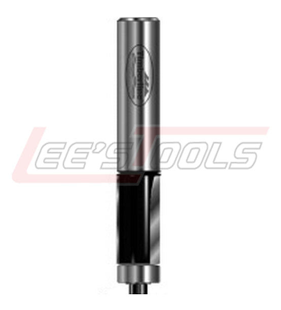 Use any of the flush trimming bits below for laminate work or for template and pattern work. For template application, the bearing follows the template, while the cutting edges trim the work piece. With the router hand held, the template is on the bottom of the work. With a table-mounted router, the template is on top.